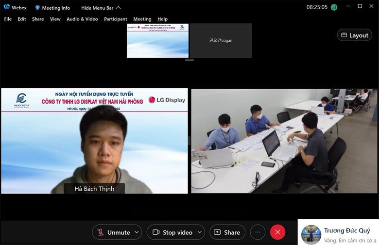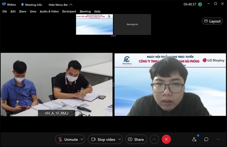 Trong hai ngày 13/01 và 15/01 vừa qua, Trung tâm Hỗ trợ việc làm và Khởi nghiệp phối hợp cùng Công ty TNHH LG Display Việt Nam Hải Phòng đã tổ chức phỏng vấn tuyển dụng trực tuyến dành cho sinh viên đã tốt nghiệp và sinh viên D12 chuẩn bị tốt nghiệp.